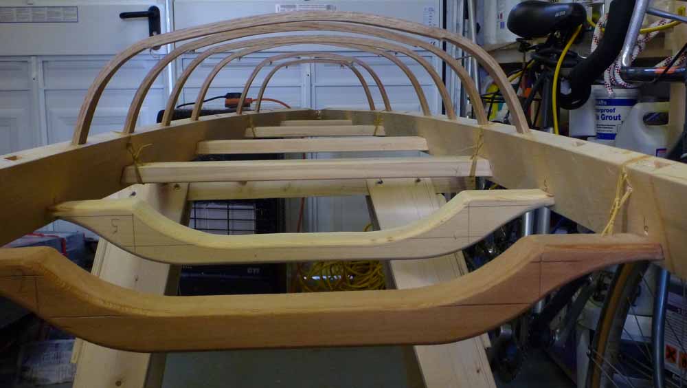 As soon as the rib is fitted into the frame and while it is is still hot and reasonably flexible (which is only minutes), it is important to sight along the kayak and adjust the profile of the rib so it is symmetrical and running fair with the others.